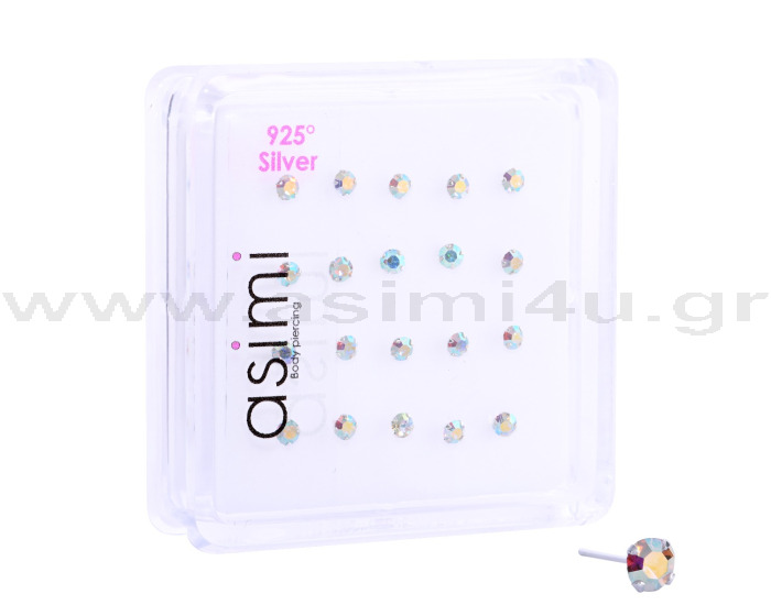 Ασημένιο ιριδίζον σκουλαρίκι μύτης 3mm με 4 γατζάκια