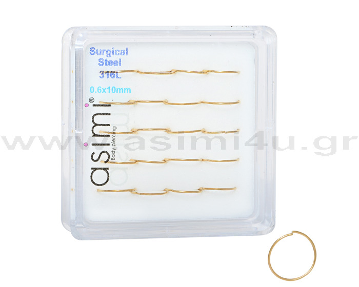 Επίχρυσος κρίκος μύτης 0.6x10mm Surgical Steel 316L