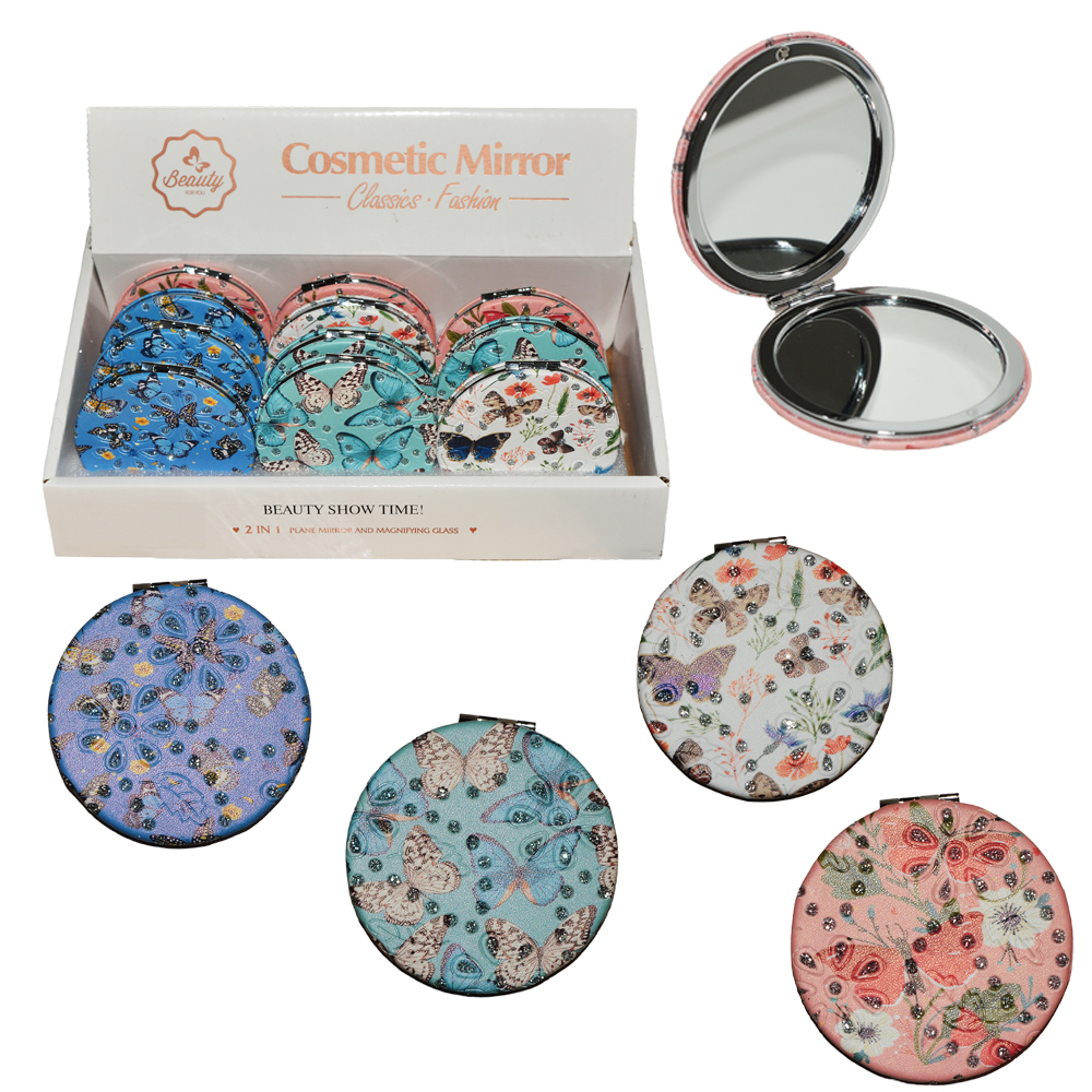 Τα καθρεφτάκια σε 4 σχέδια αποτελούν ένα κομψό και πρακτικό αξεσουάρ για κάθε γυναικεία τσάντα. Διαθέτουν διπλό καθρέφτη, έναν κανονικό και έναν μεγεθυντικό, ιδανικό για μακιγιάζ ή γρήγορες διορθώσεις καθ’ όλη τη διάρκεια της ημέρας. Τα σχέδιά τους με πεταλούδες και λουλούδια προσδίδουν ρομαντική και θηλυκή αισθητική, ενώ η ποιοτική κατασκευή τους εξασφαλίζει ανθεκτικότητα και εύκολη μεταφορά.
