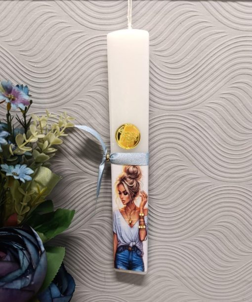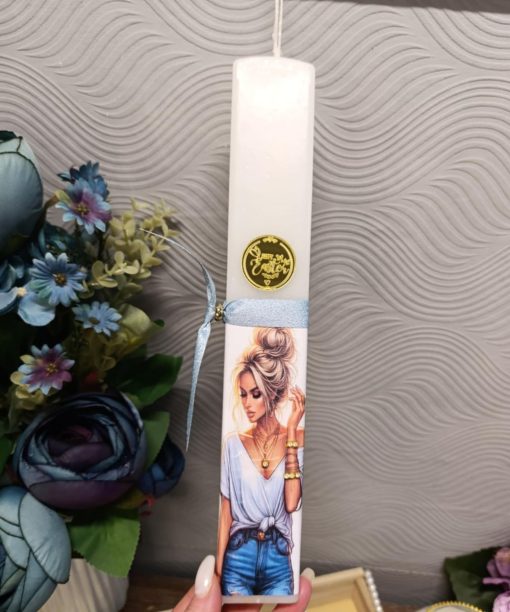 Χειροποίητη πλακέ αρωματική λαμπάδα με ύψος κεριού 30cm.