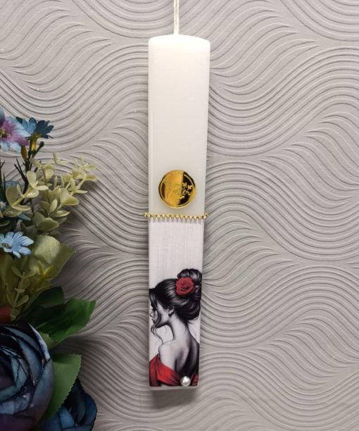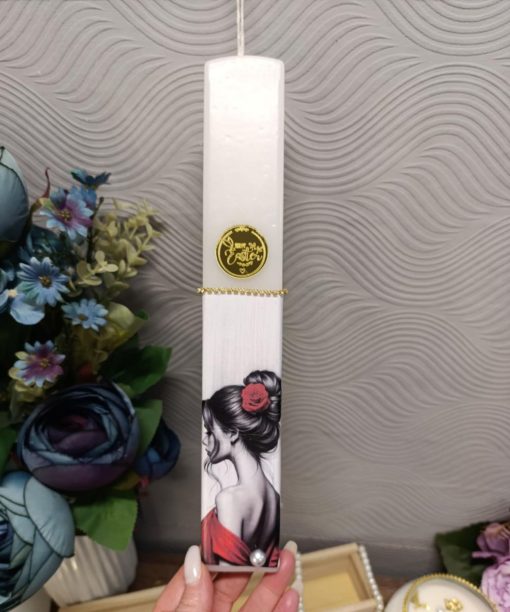 Χειροποίητη πλακέ αρωματική λαμπάδα με ύψος κεριού 30cm.